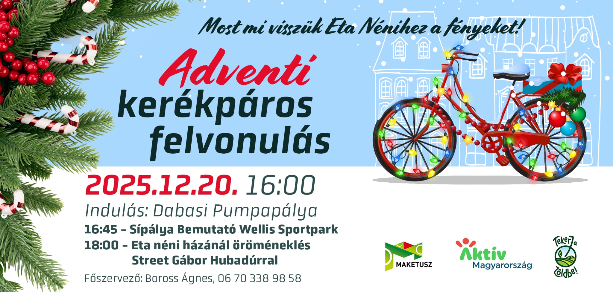 2025. december 20-án adventi díszben fénylő kerékpáros felvonulásra invitálunk benneteket Dabason!
