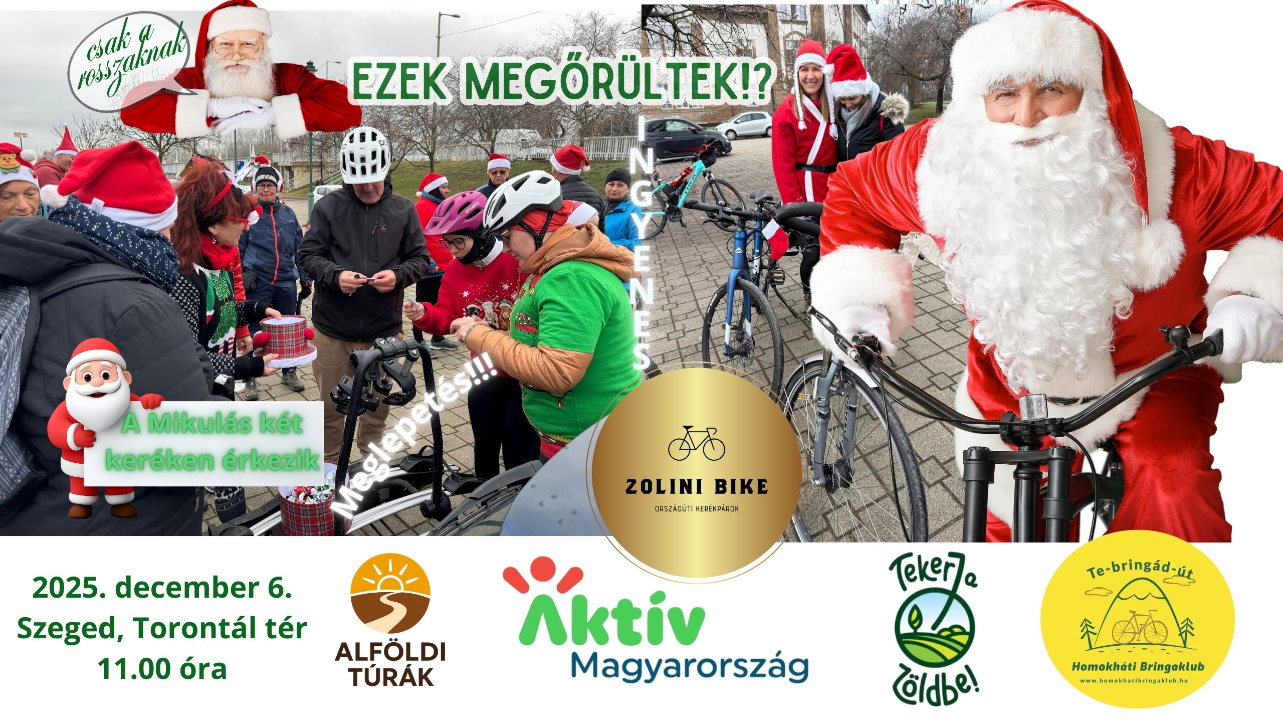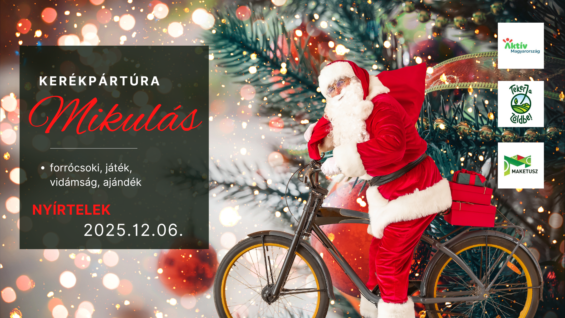 Téli kerékpártúra?! Igen, még ne akaszd szögre a bringádat!! Mikulás napi kerékpártúrára hívunk, játékkal, ajándékkal sok nevetéssel. Ülj nyeregbe és próbáld ki milyen egy decemberi kerékpározás, ha az időjárás nem